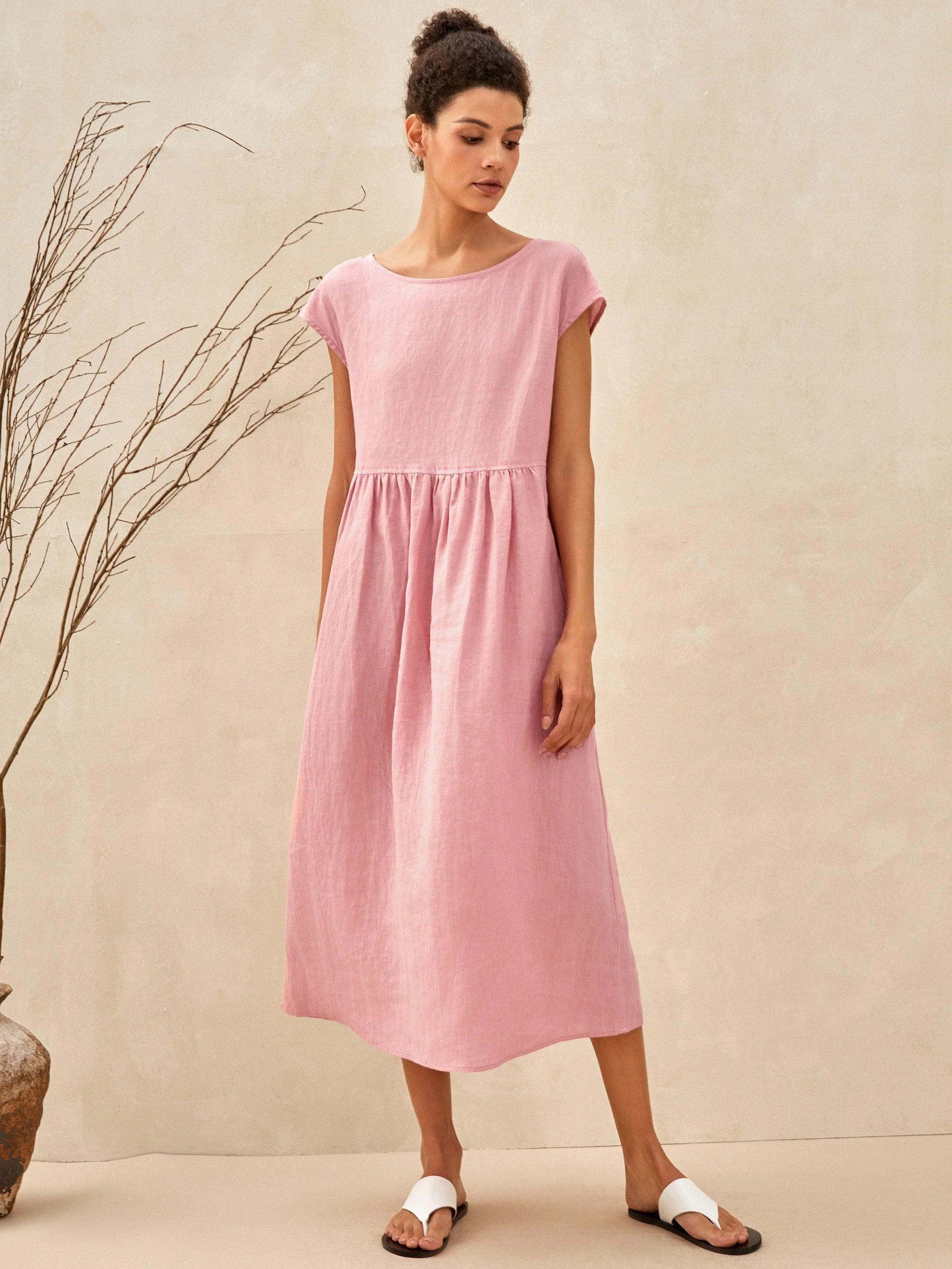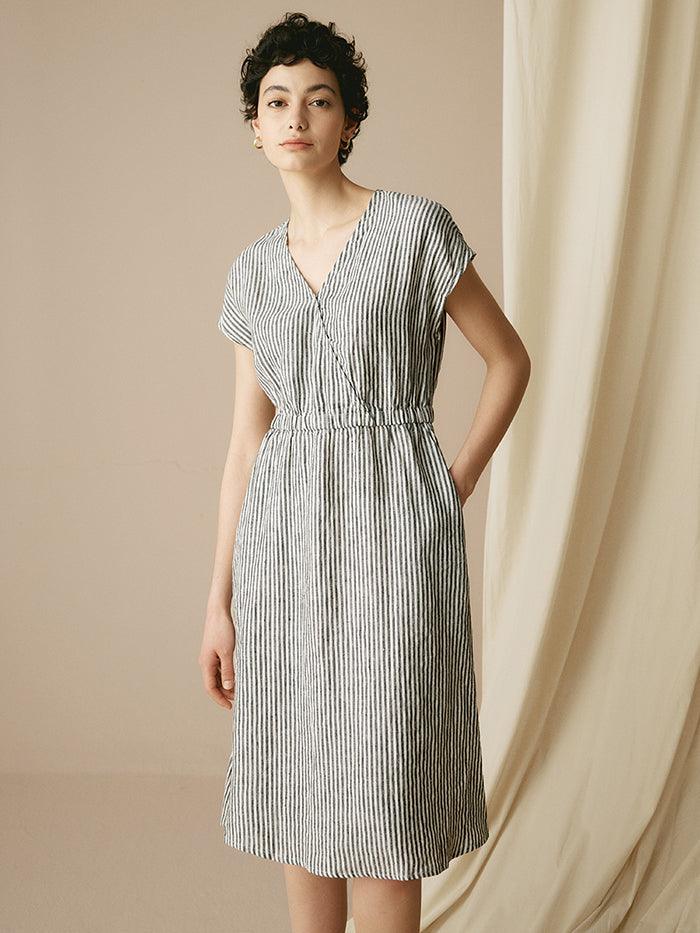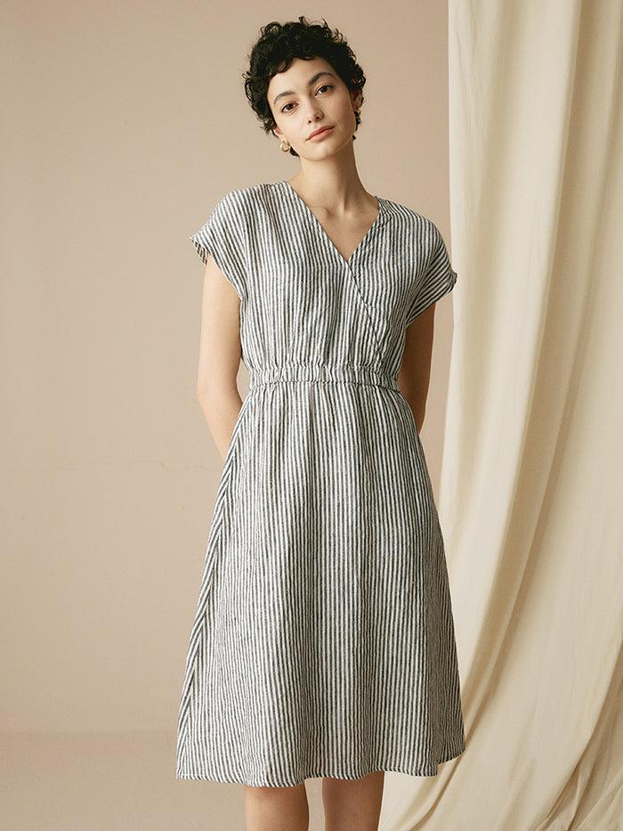 100% Linen V-Neck Gathered-Waist Dress$58.70 USD -