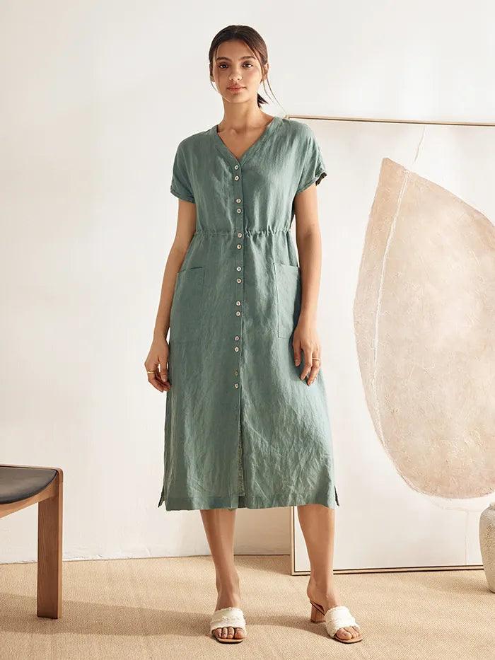 100% Linen Buttoned Dress ESTELLE$58.70 USD$104.90 USD -