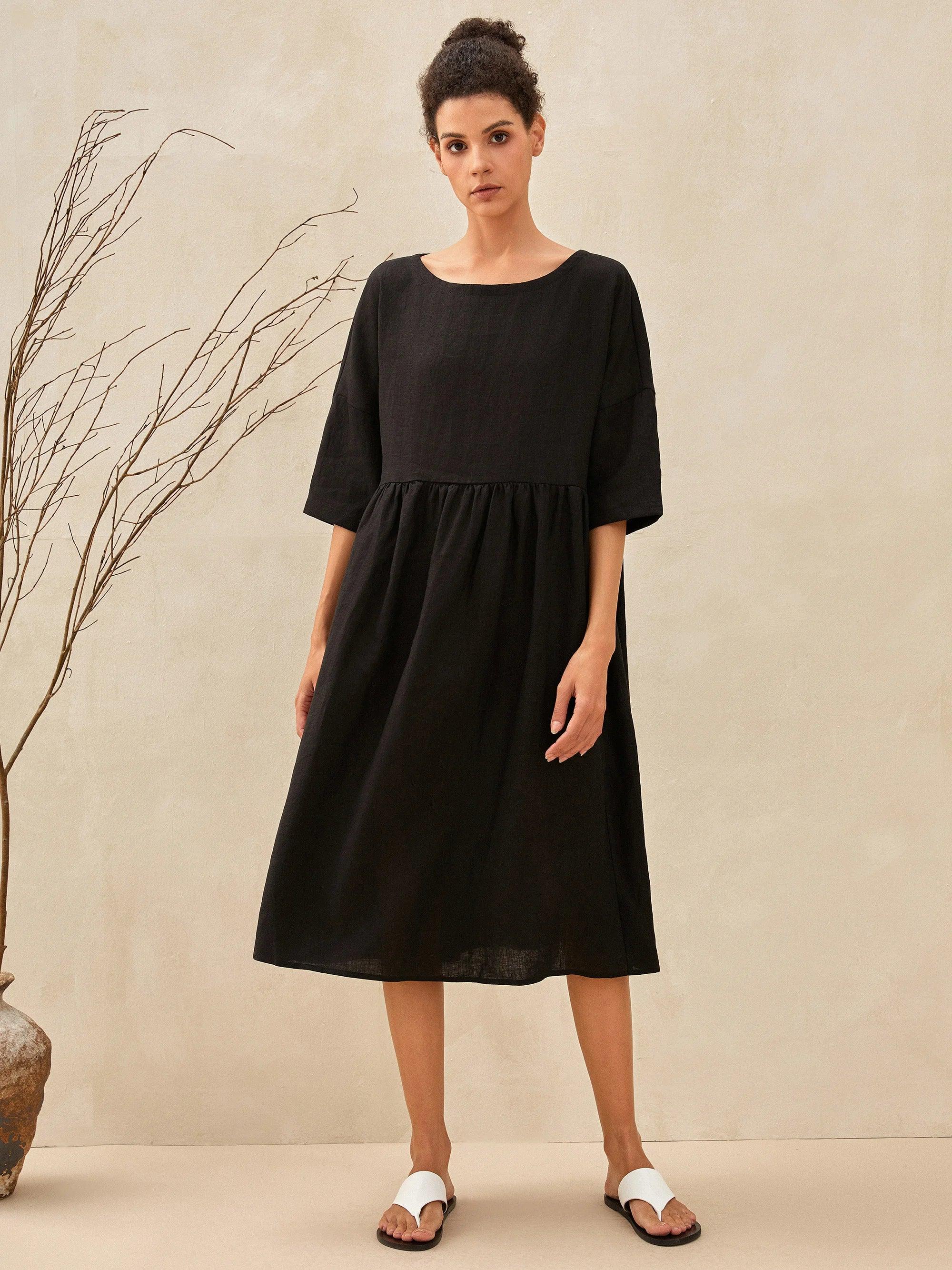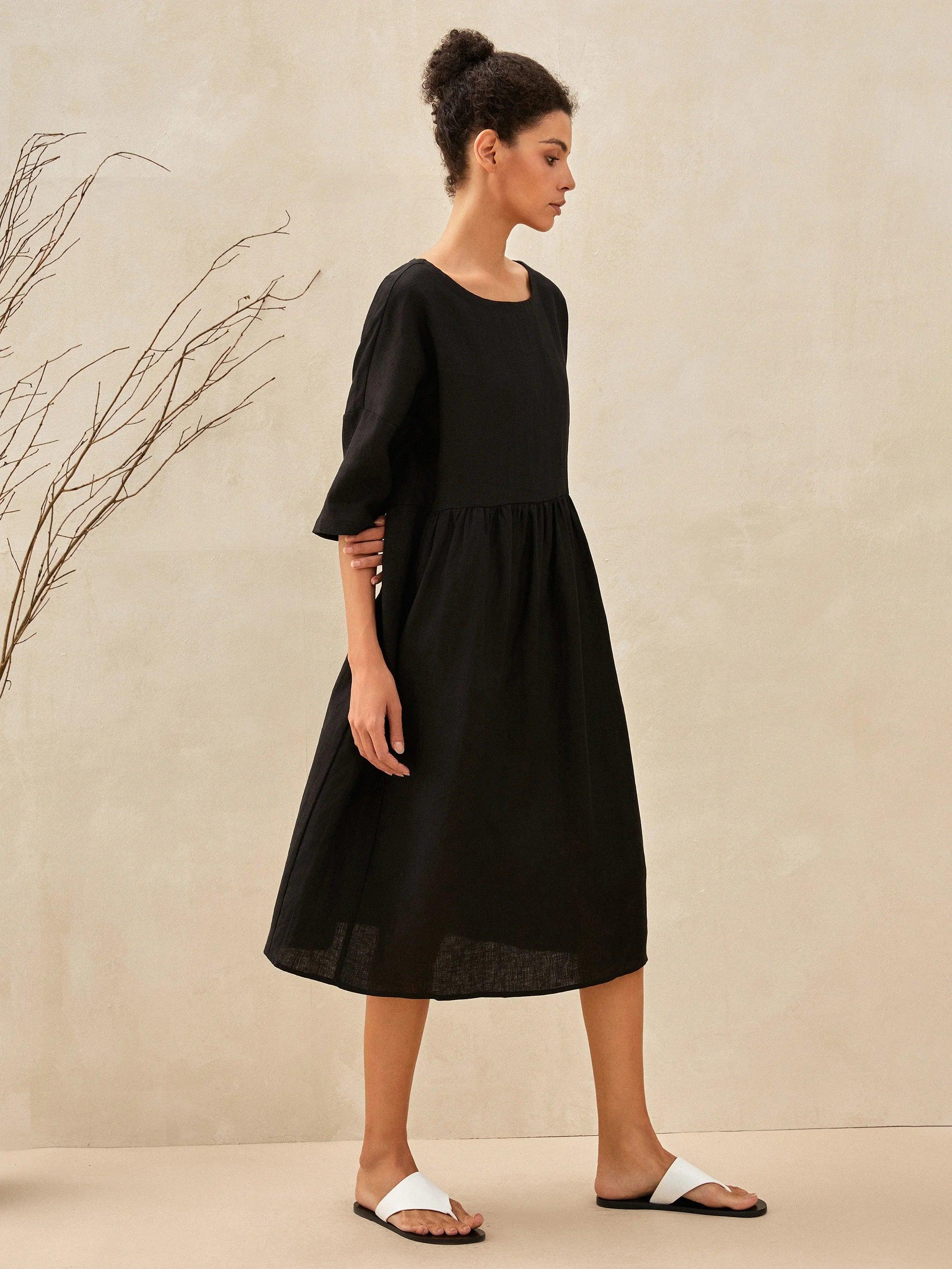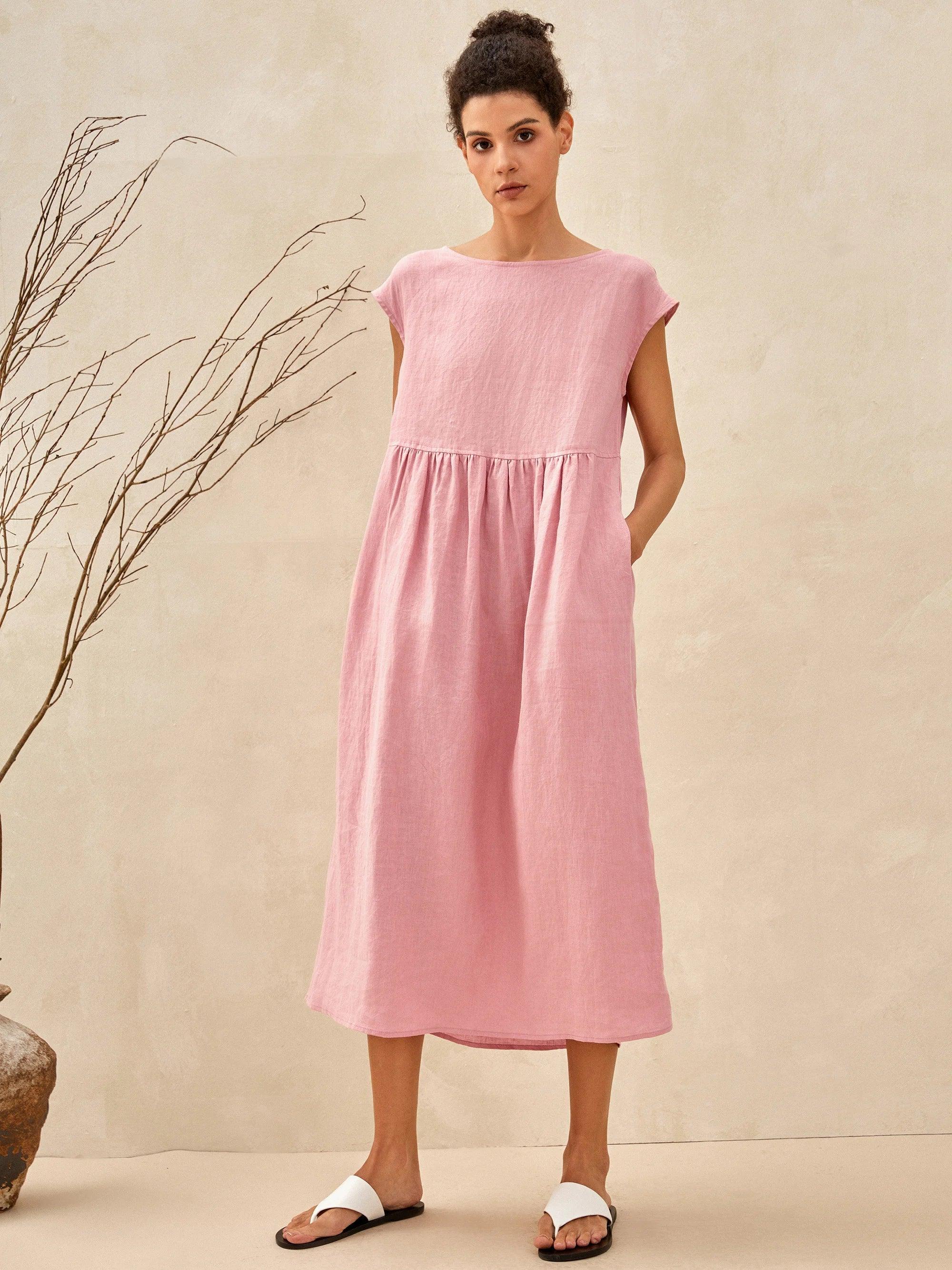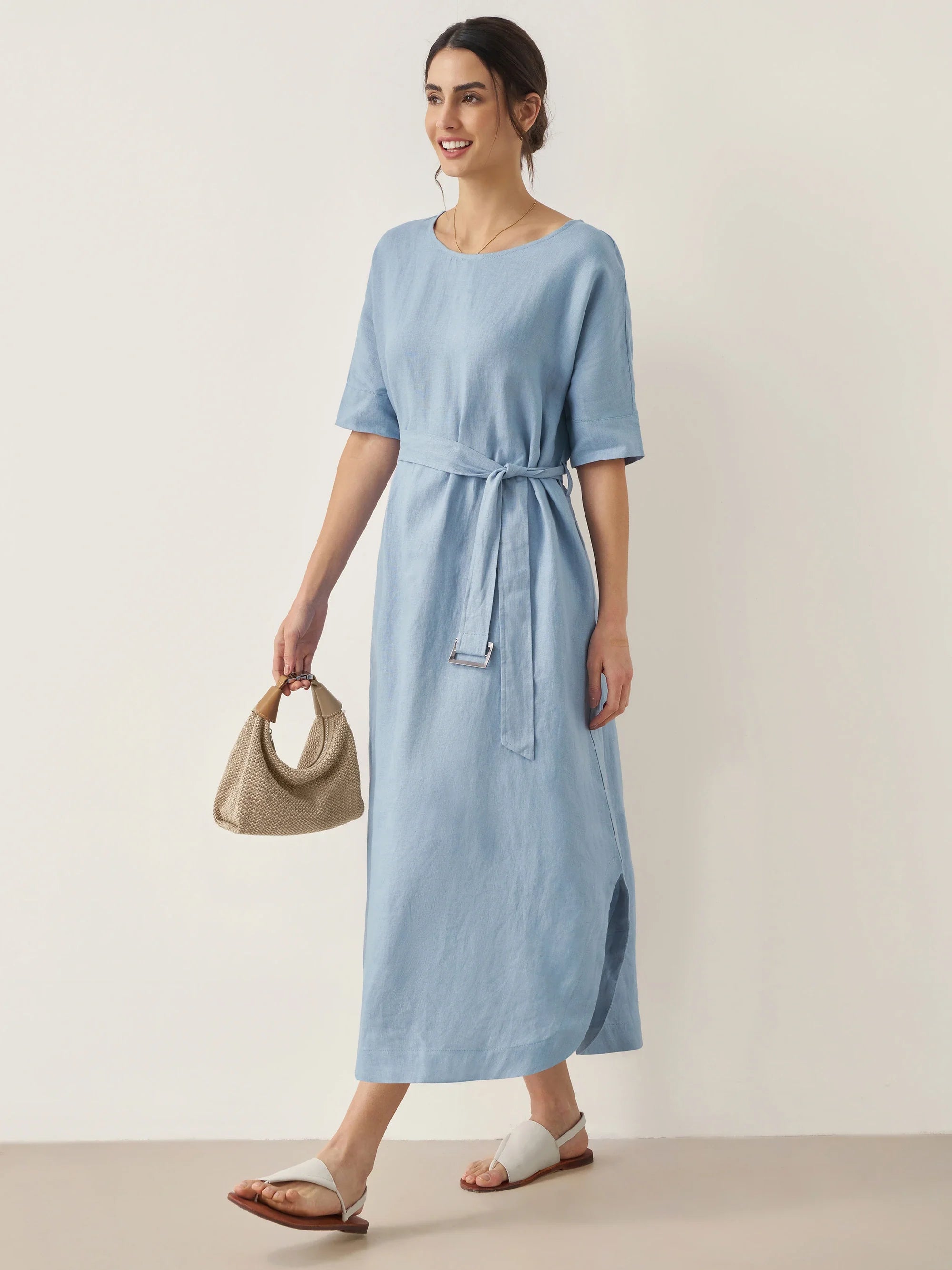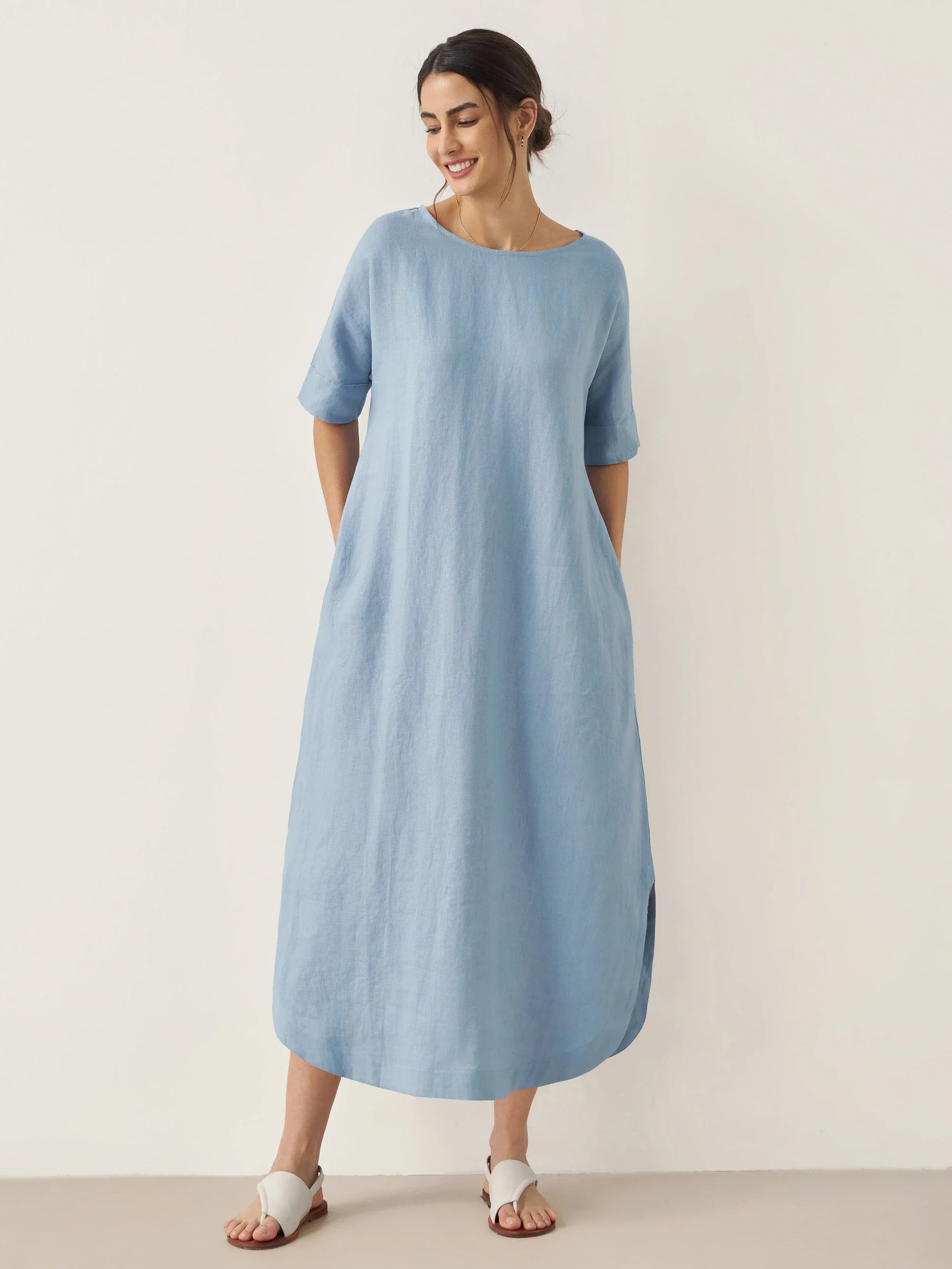 100% Linen Mid-Sleeve Maxi Dress GEORGINA$55.95 USD -