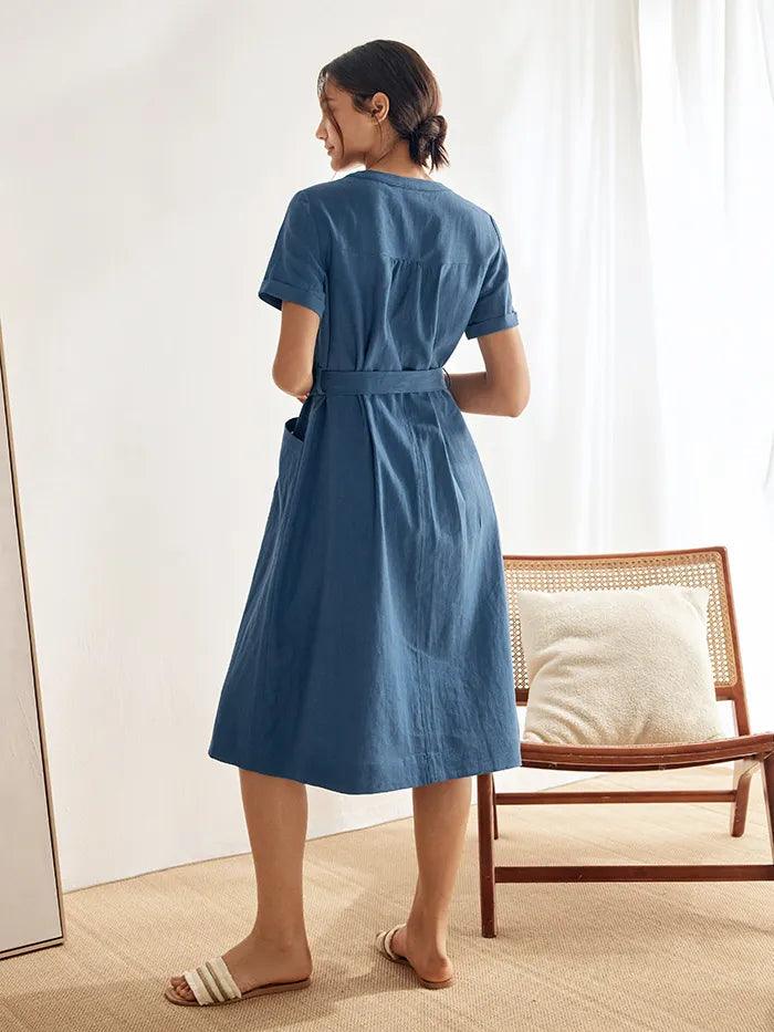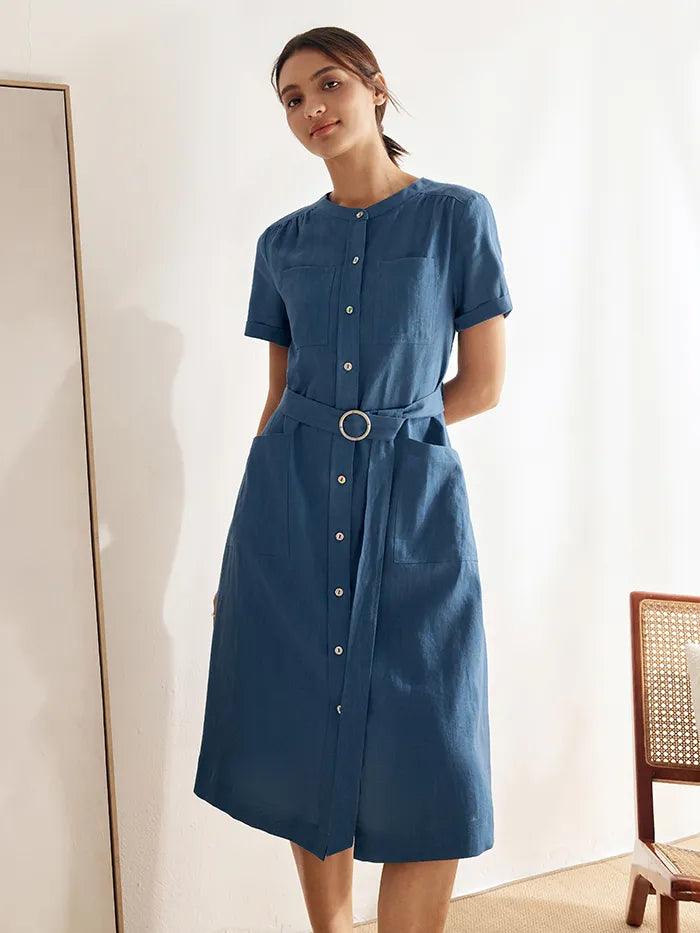 Linen Multi-Pocket Belted Shirt Dress$43.48 USD$99.90 USD -