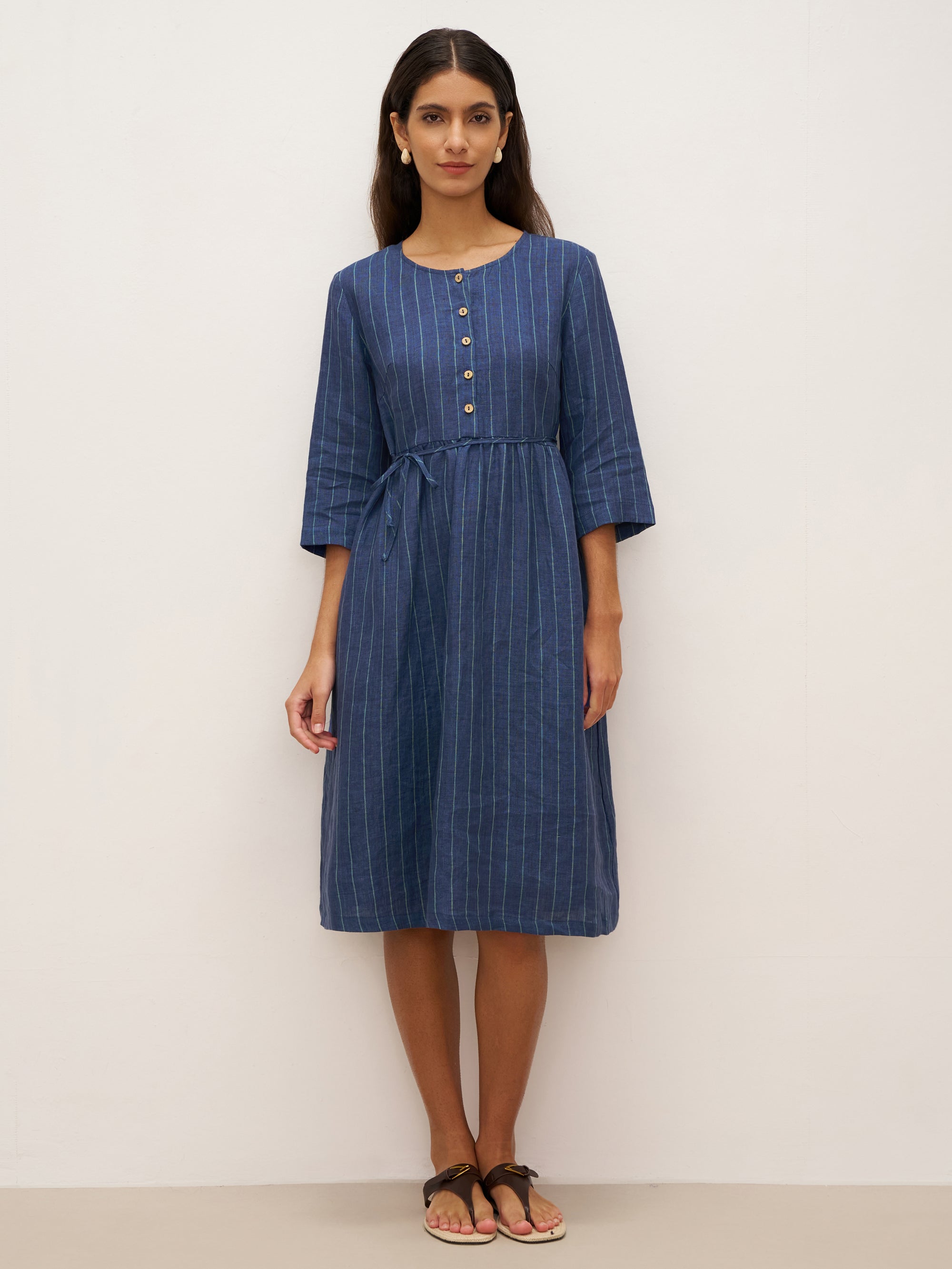 100% Linen Striped Elastic-Waist Midi Dress ARIA€47,95 EUR -