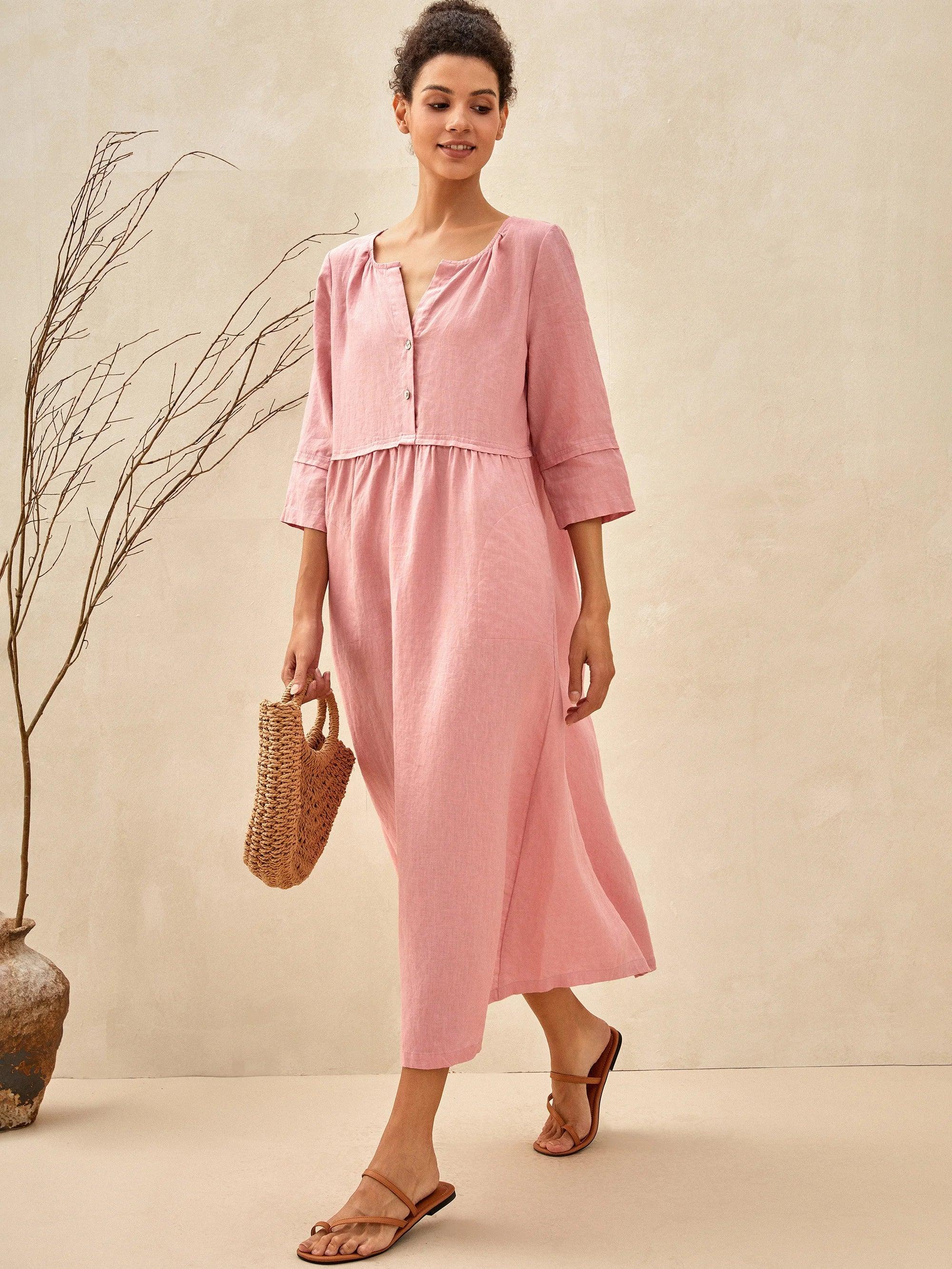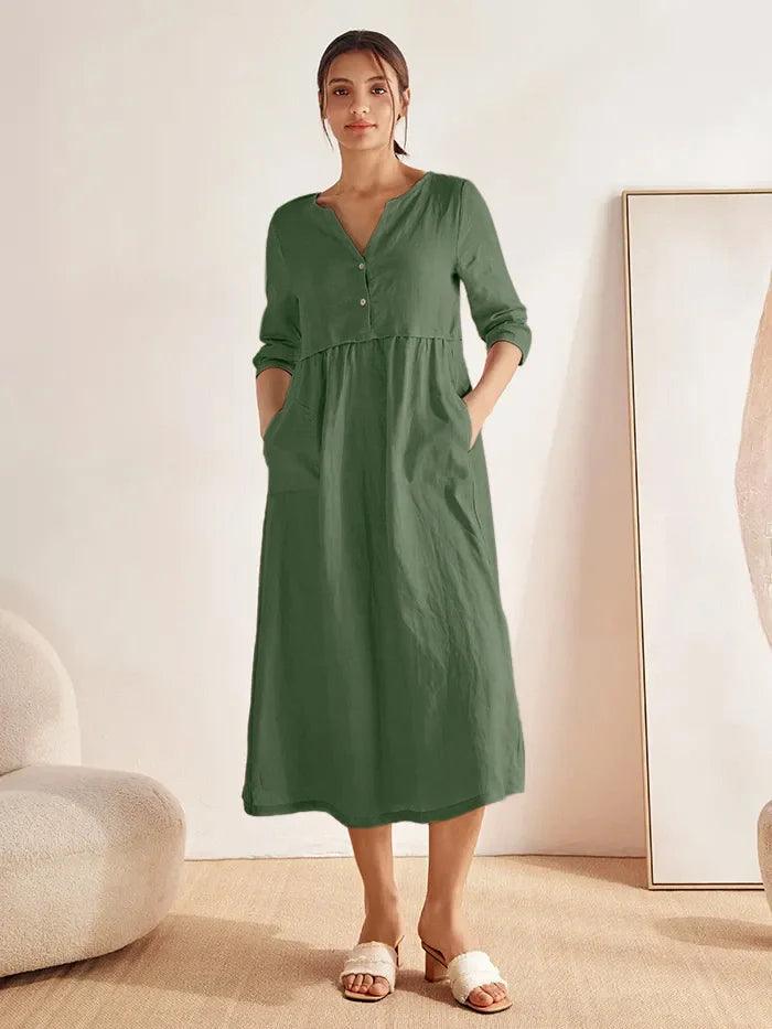 Linen V-Neck Button Detail Knee Length Dress€45,95 EUR€80,95 EUR -
