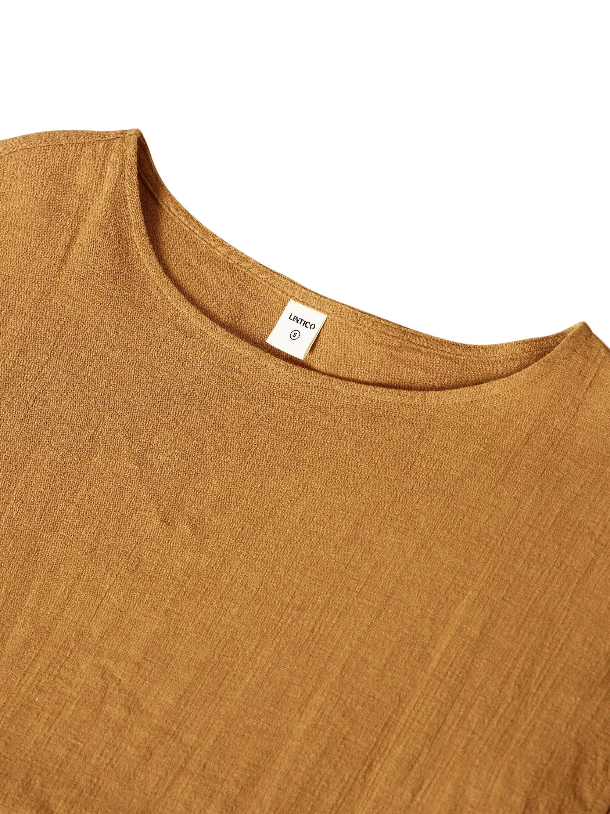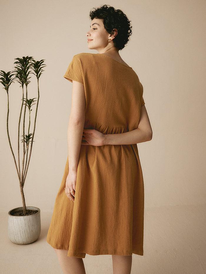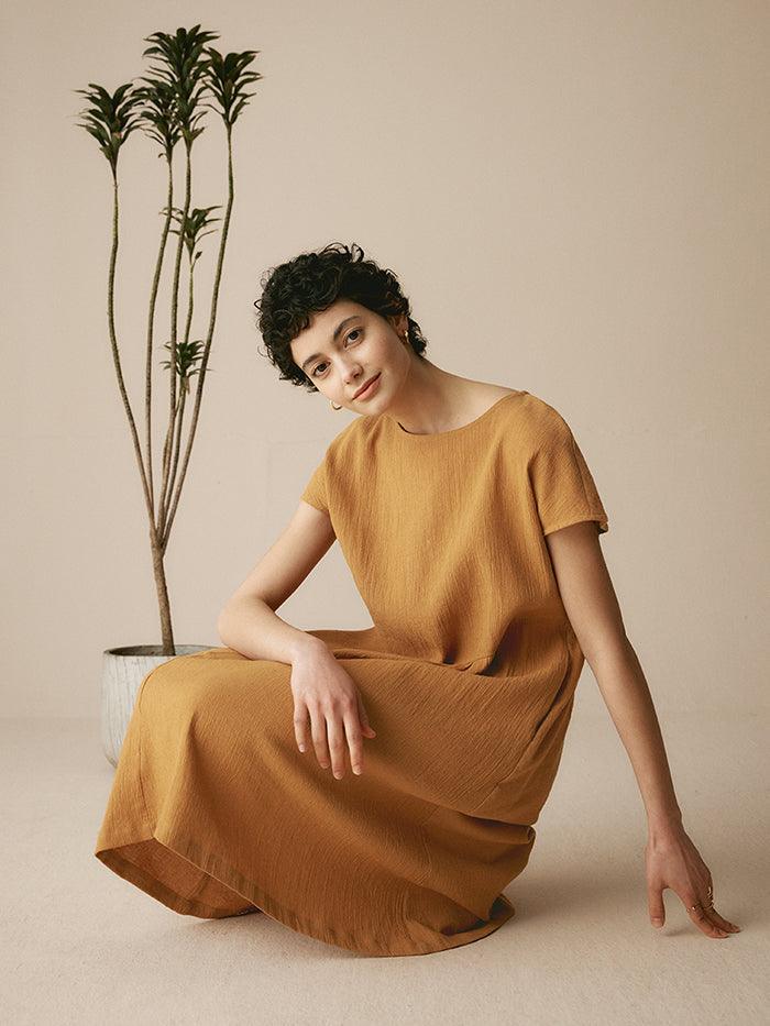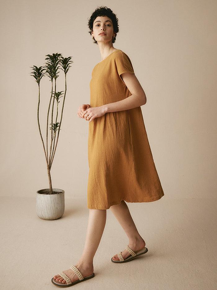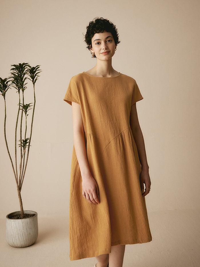 Linen Cap-Sleeve Textured Washed Midi Dress ALICE