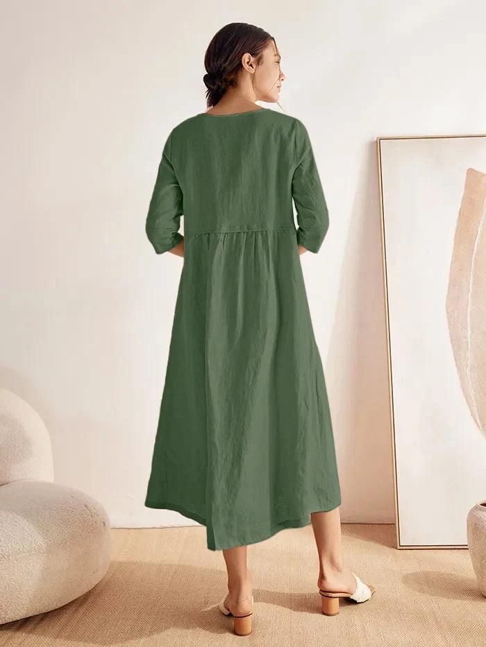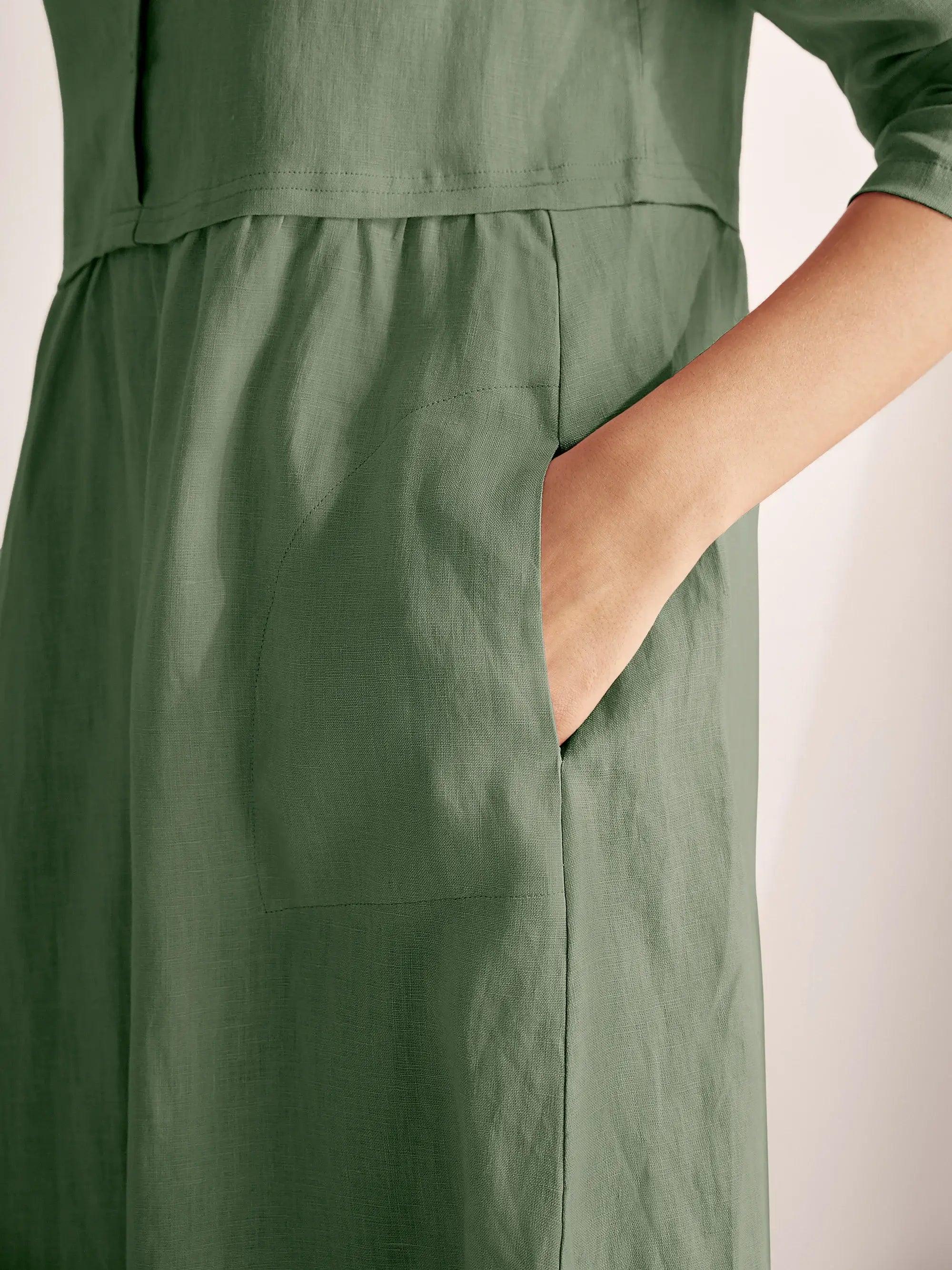 100% Linen Loose Fit Button Waist Gathered Maxi Dress LUNA