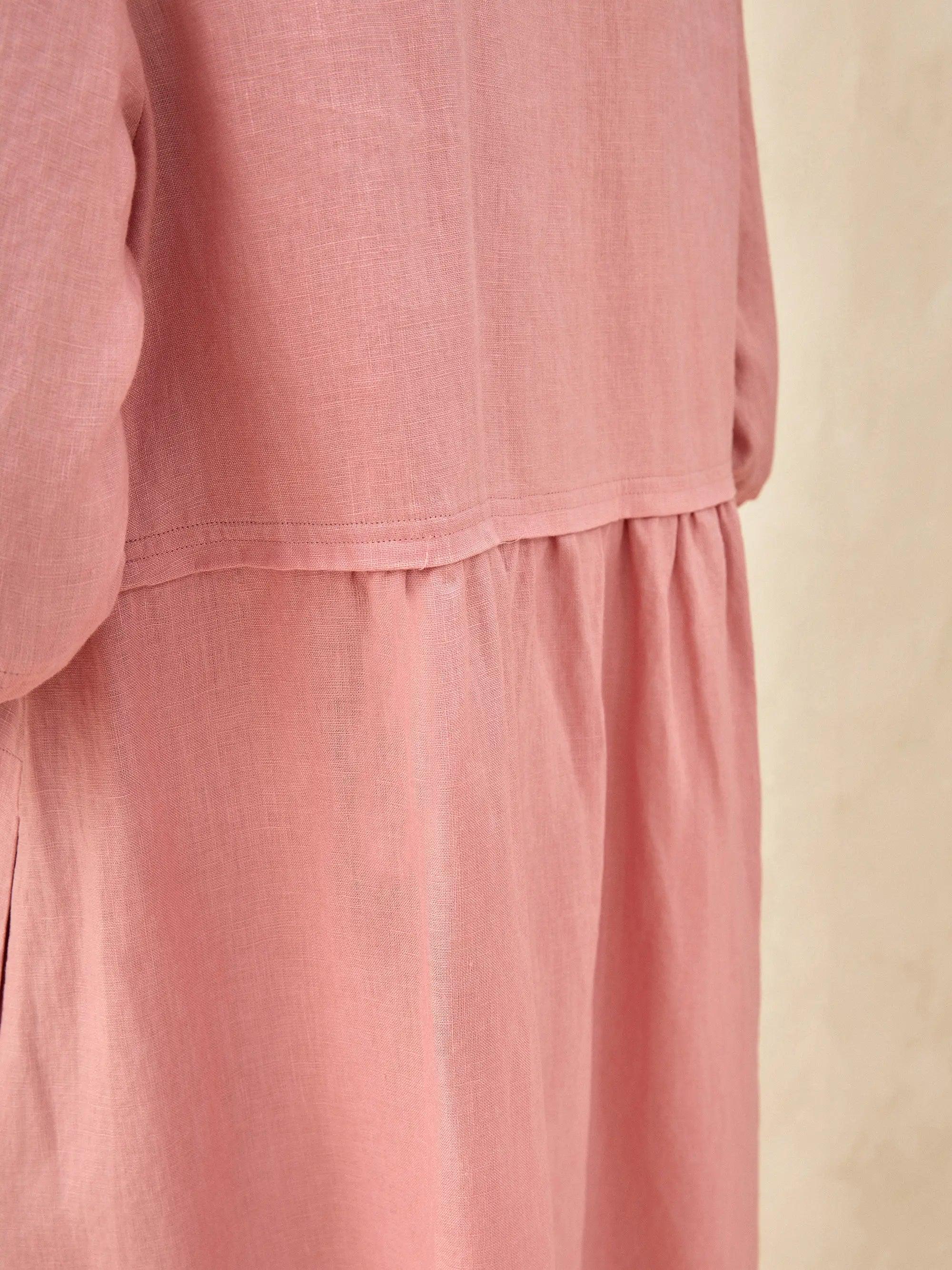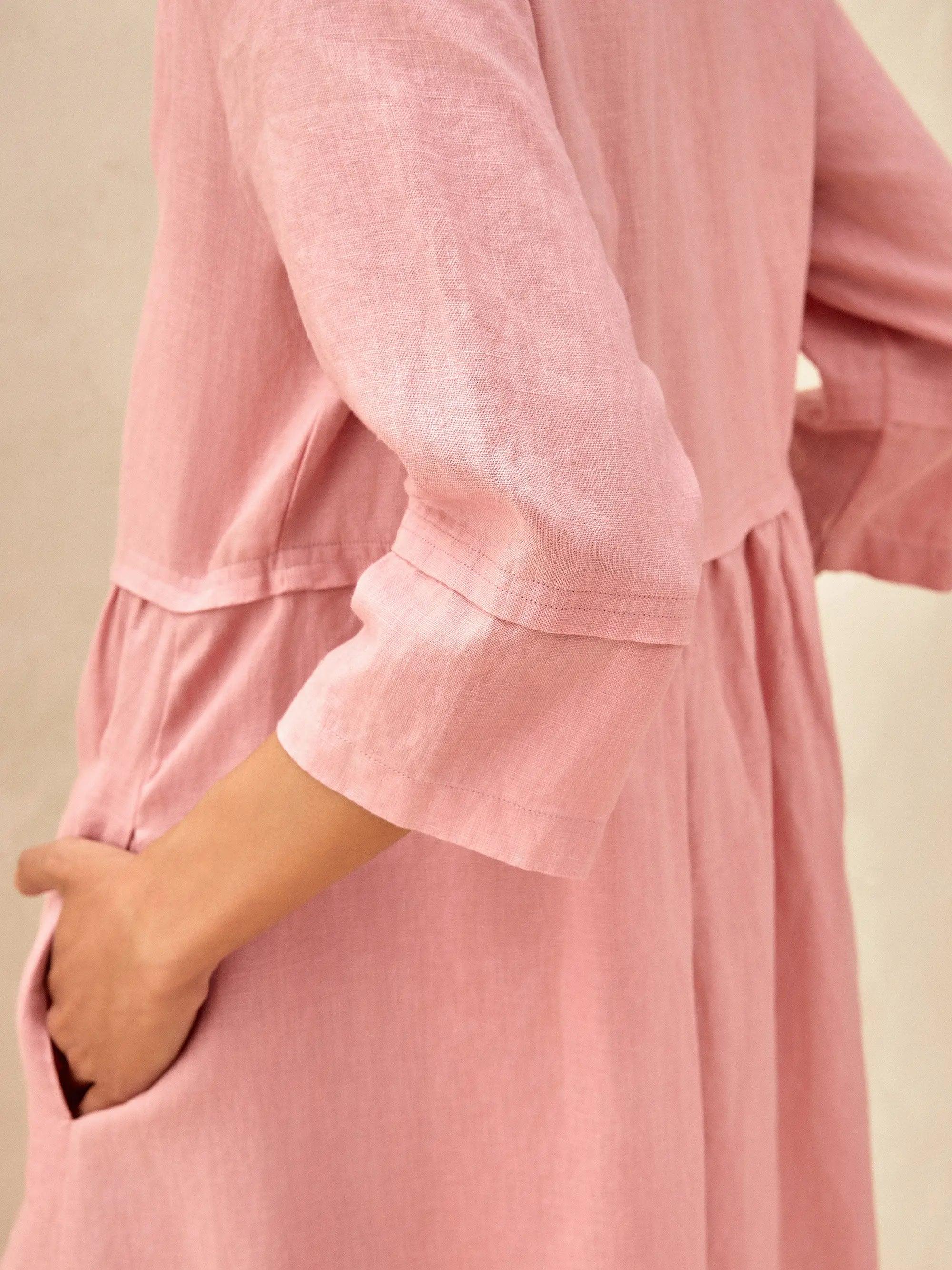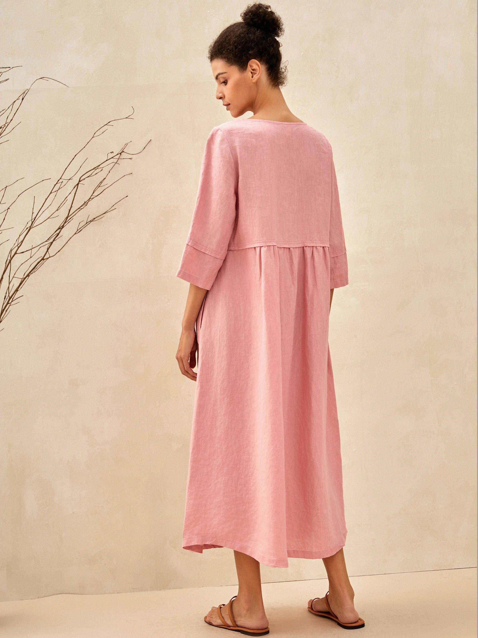 100% Linen Loose Fit Button Waist Gathered Maxi Dress LUNA