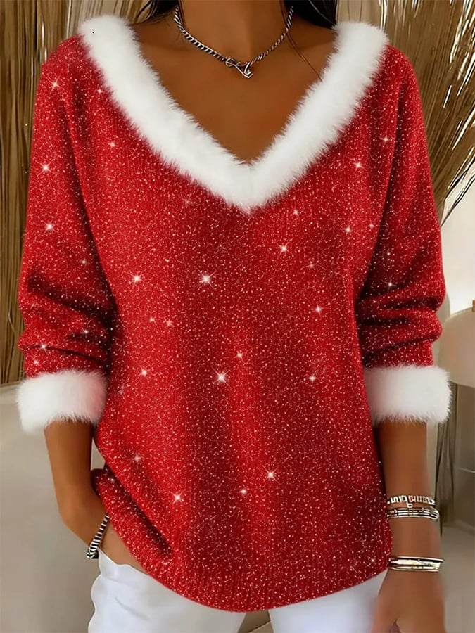 Women's Casual Christmas Plush Sequined Top