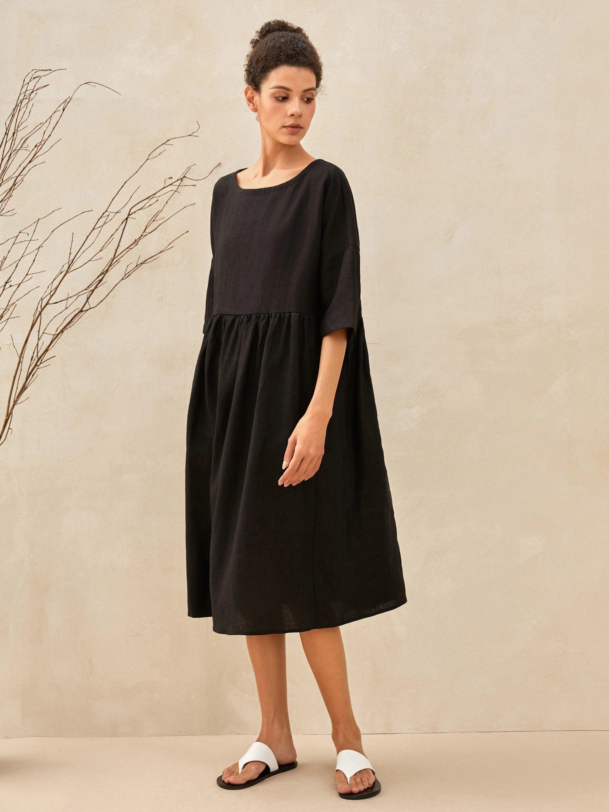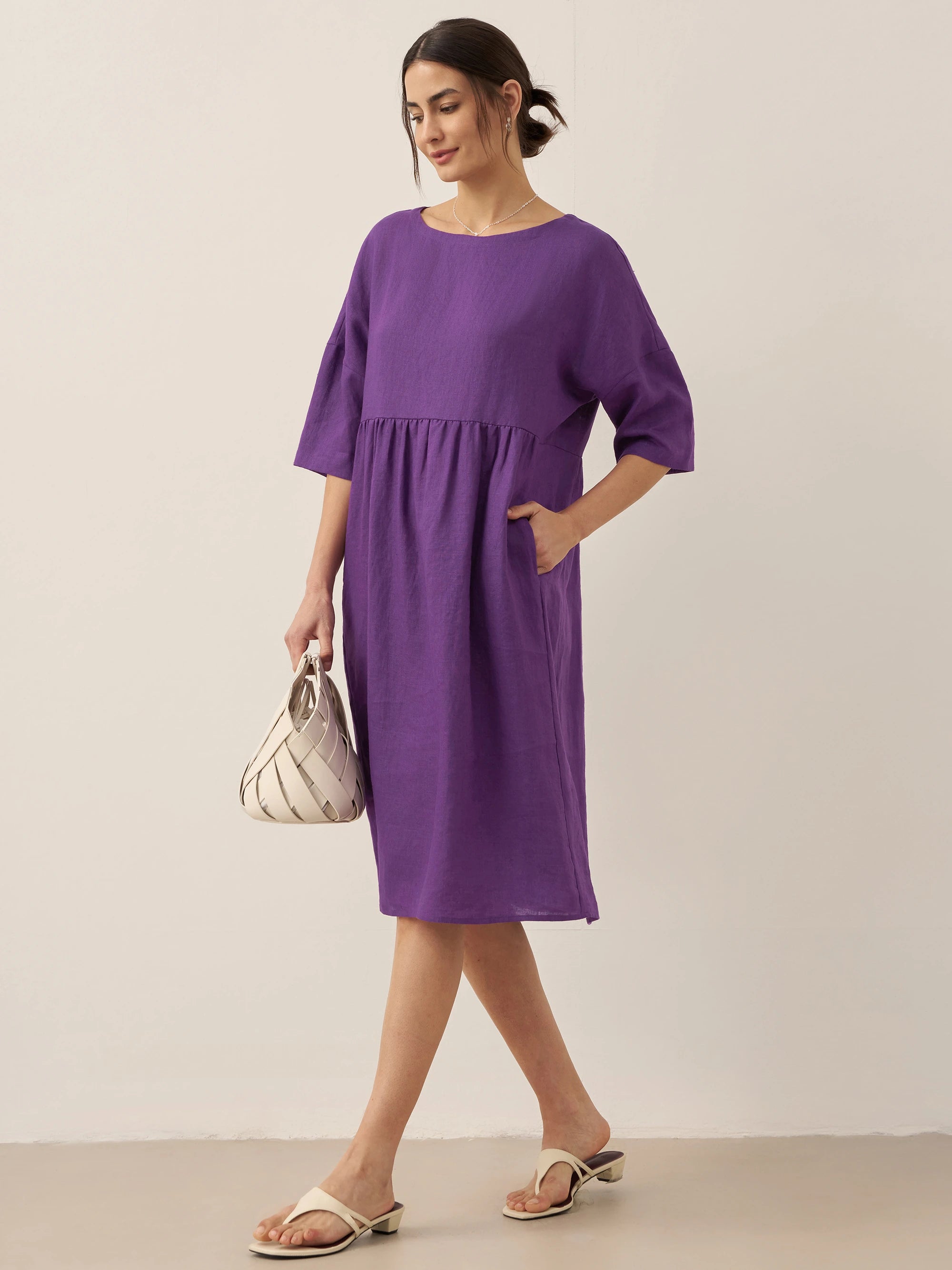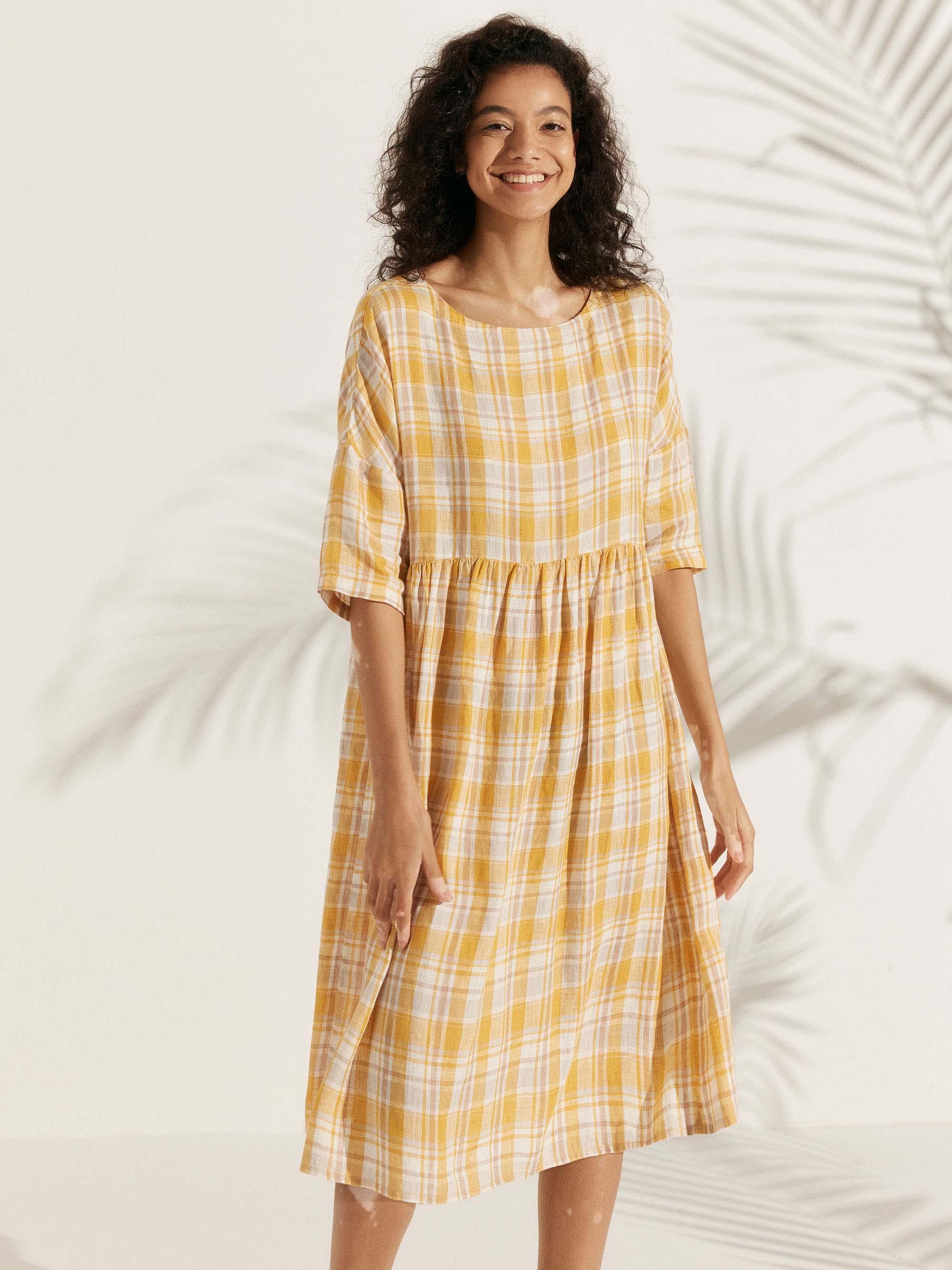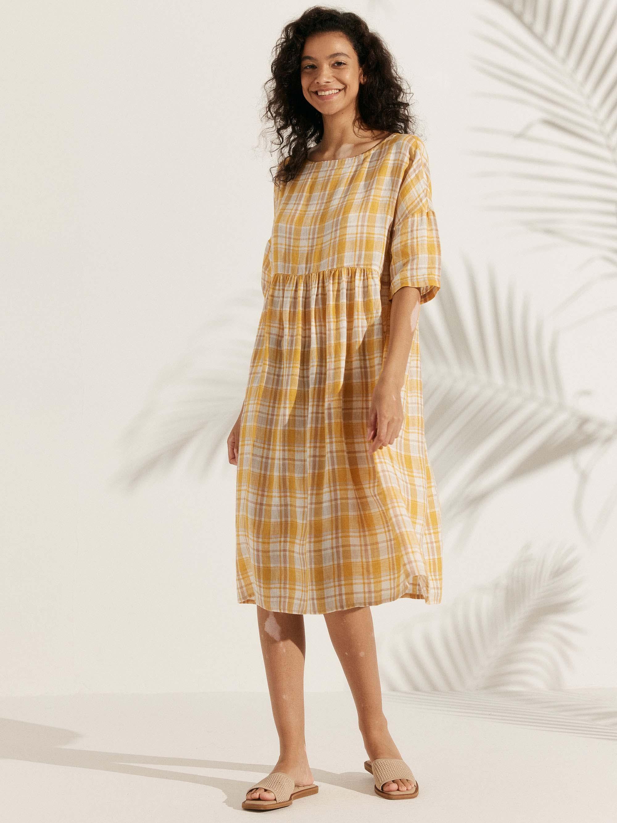 Let the breeze guide your movements in this short-sleeve dress, with its delicate and flowing hemline that adds a touch of graceful charm to your every step.