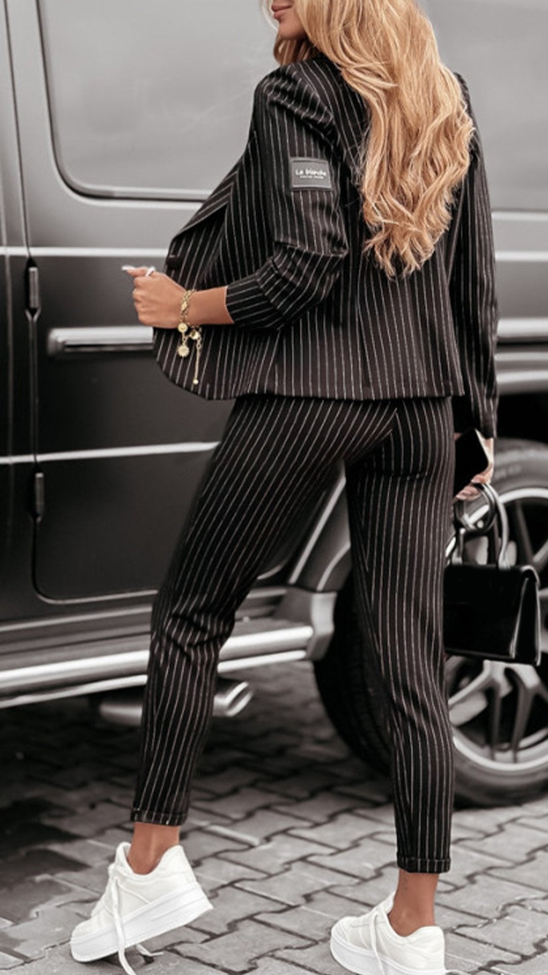Women's Lapel Long Sleeve Striped Casual Suit