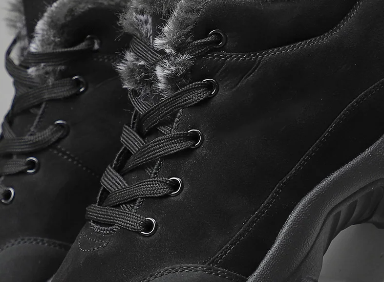 The shoes are made from lightweight, breathable, and waterproof leather. They block rain and snow to keep you dry, warm, and comfortable all day, and they are easy to clean with a cloth.